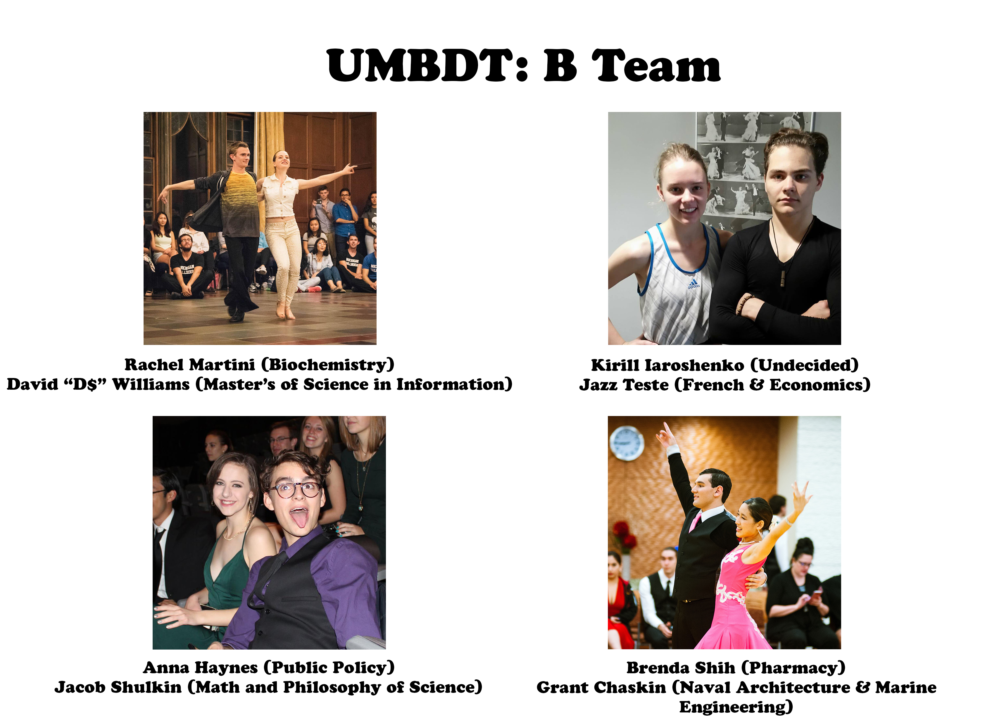 - Come to our tie-dye event, this Friday. Apparel is in, which means it’s time to utilize our white ballroom t-shirts. Join the board and ballroom house in tie-dyeing our apparel to look groovy at OSB (and maybe even get made fun of by Steve and Susan). If you’re interested in attending, email Peter so we can figure out how much dye to buy! (peterjh@umich.edu)