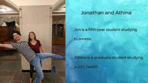 Josh (senior, Economics) and Dasha (senior, BCN)