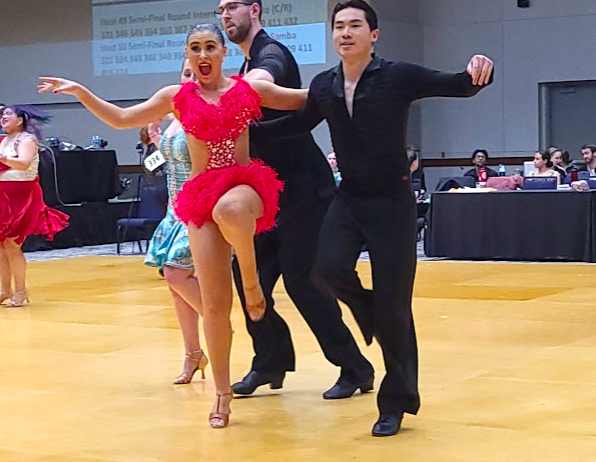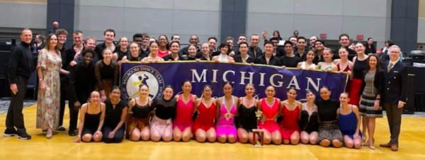 Picture of the team after a successful weekend at the Arnold Classic! I am so proud of each and every one of you who went and danced! We are winners of the Arnold Classic this year and every single one of you who danced contributed to the points leading to our victory. In addition, we placed first in the international-style team match and second in the American-style team match. So a huge thank you to all of our team match dancers!! We are now over halfway through the semester and have two more competitions left!