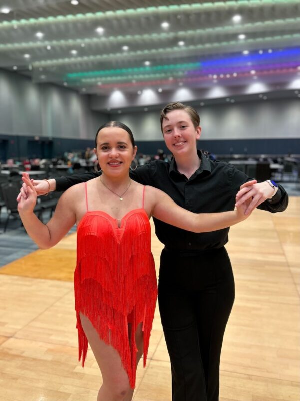 Liam is a sophomore majoring in Biology (pre-med), and this is his 3rd semester on the team. His favorite dance is the Viennese Waltz. Fun fact: He once owned 30 different suits and would wear a different one for the last 30 days of middle school in what he called a suit marathon. Taryn is a sophomore majoring in Communications and Media with a minor in Dutch, and this is her 3rd semester on the team. Her favorite dance is also the Viennese Waltz! Fun fact: she has sewn an entire 1860s dress and petticoat (and she got to use an industrial sewing machine :))