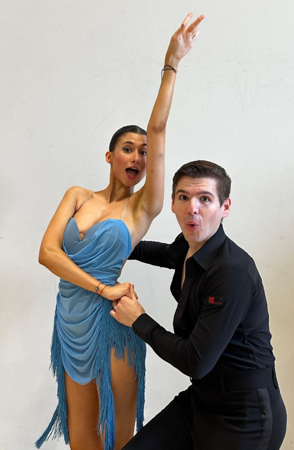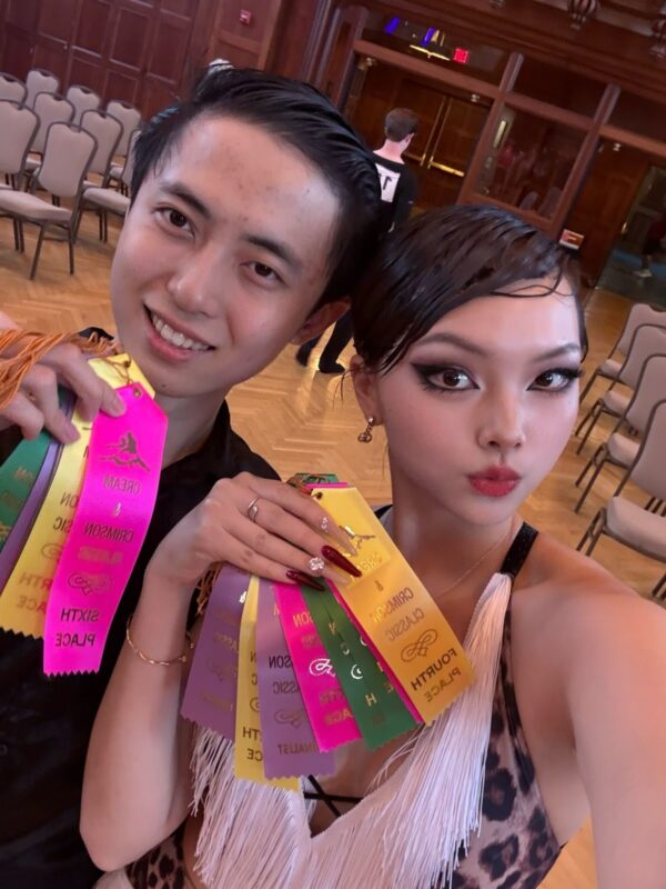 Qingyue is a grad student studying CSE, and this is his 3rd semester on the team. His favorite dance is anything Latin. His fun fact is that he’s super excited for Halloween. Avy is a sophomore majoring in Economics and Business. This is her 3rd semester on the team. Her favorite dance is the Samba. Not so fun fact: She had press-on nails once and Qingyue snapped all of them during a Jive practice.