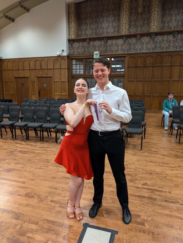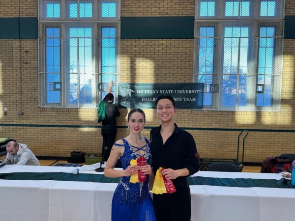 Nate is a grad student studying Sustainability and Energy Systems Engineering, and this is his 8th semester on the team. His favorite dance is the American Foxtrot. Fun fact: Along with his partner Rachel, Nate is the winner of one of the most prestigious awards in collegiate ballroom dance, the Backwards Cha Cha at the MSU Green and White Gala. Rachel is a senior double majoring in Actuarial Mathematics and Economics, and this is her 8th semester on the team. Her favorite dances are the International Cha Cha and the Polka. Fun fact: She can solve a Rubik’s Cube.